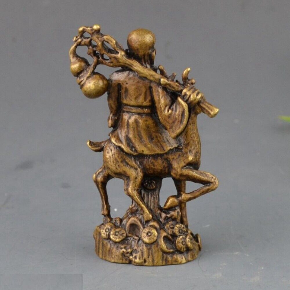 Solid Copper The God of Longevity Trinket Hand Carved Bronze Model Figurines