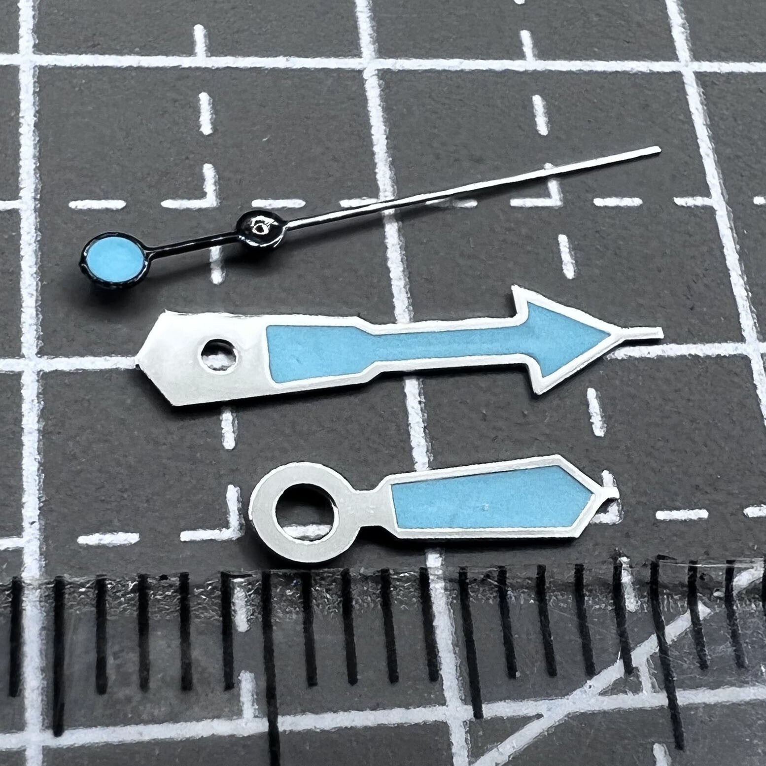 (messen vom Mittelpunkt des Zeigerlochs bis zur Spitze des Zeigers)