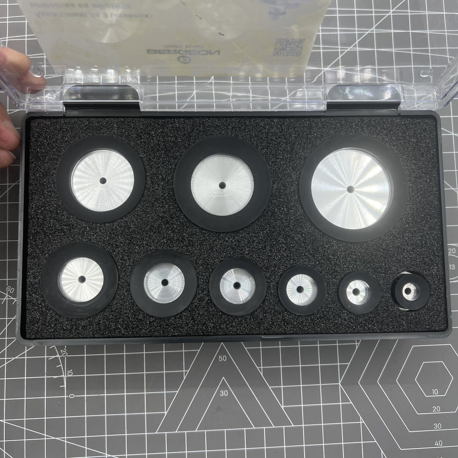 Set mit 9 weichen Saugnapf-Oberteilen aus Adipren zum Öffnen von Uhrengehäusen