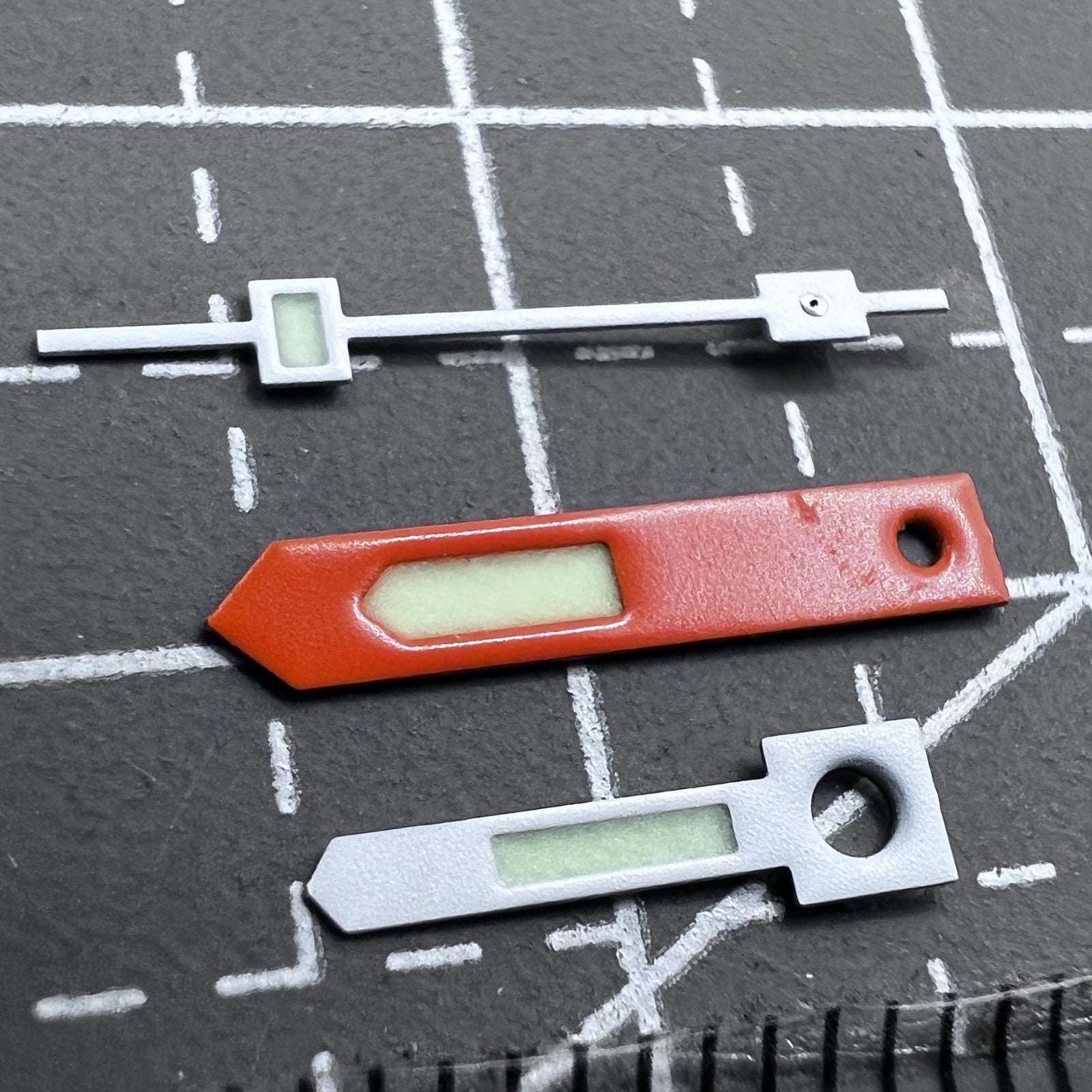 Grünes Lume Vintage Uhrenzeigerset Orange Weiß Akzent für NH34 NH35 NH36 NH38