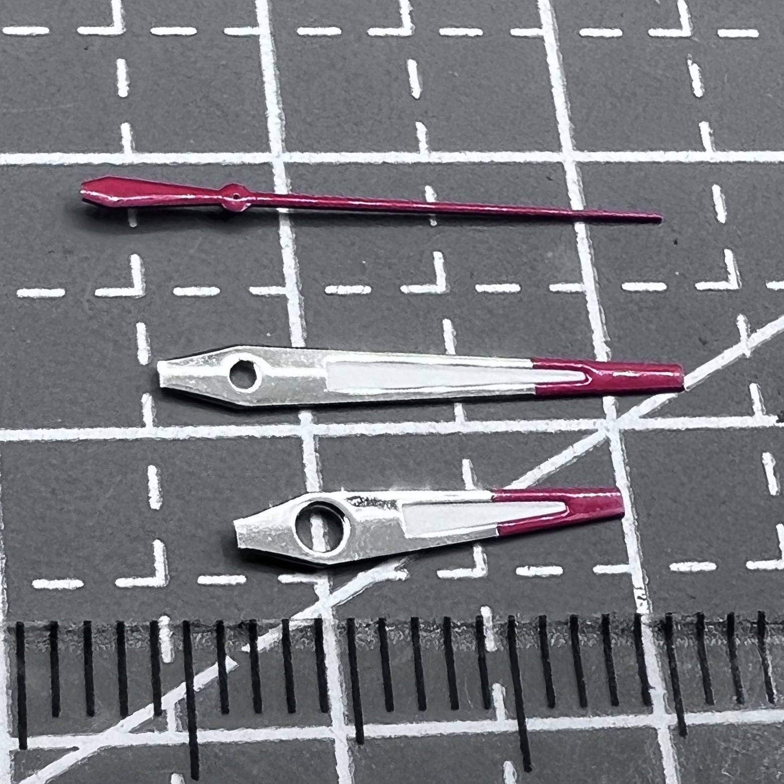 (messbar vom Mittelpunkt des Zeigerlochs bis zur Spitze des Zeigers)