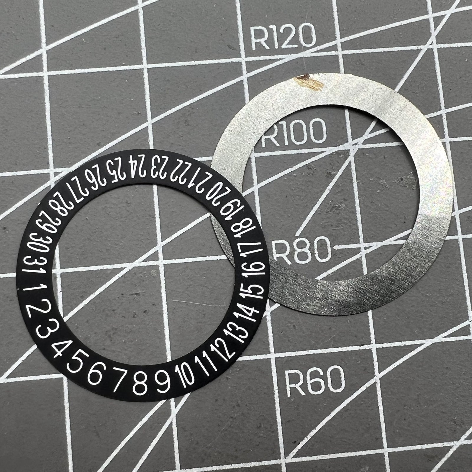 2 Stück Datumsscheibe Overlay Weiß Schrit Schwarz Hintergrund Datum bei 6 Uhr