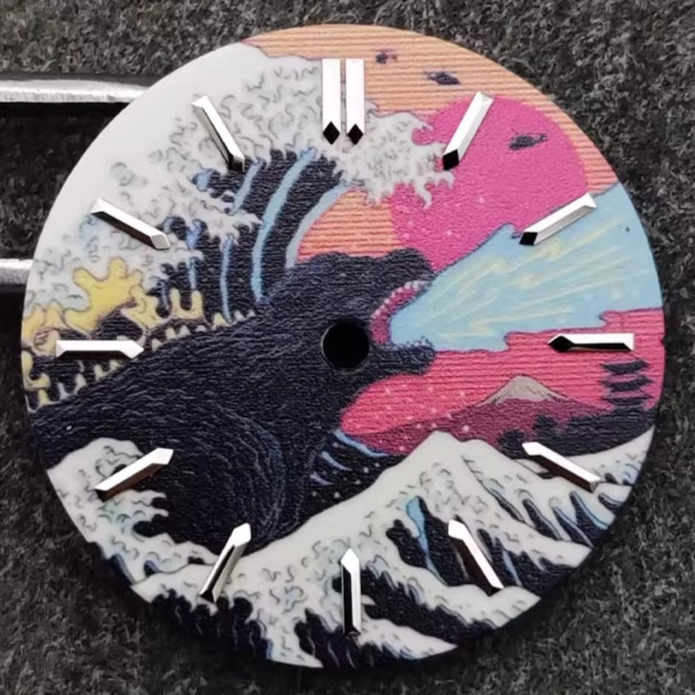 28.5mm Japanese Landscape Monster Painting Green Lume Watch Dial Fit for NH35 Long Nail
