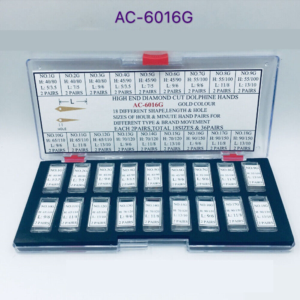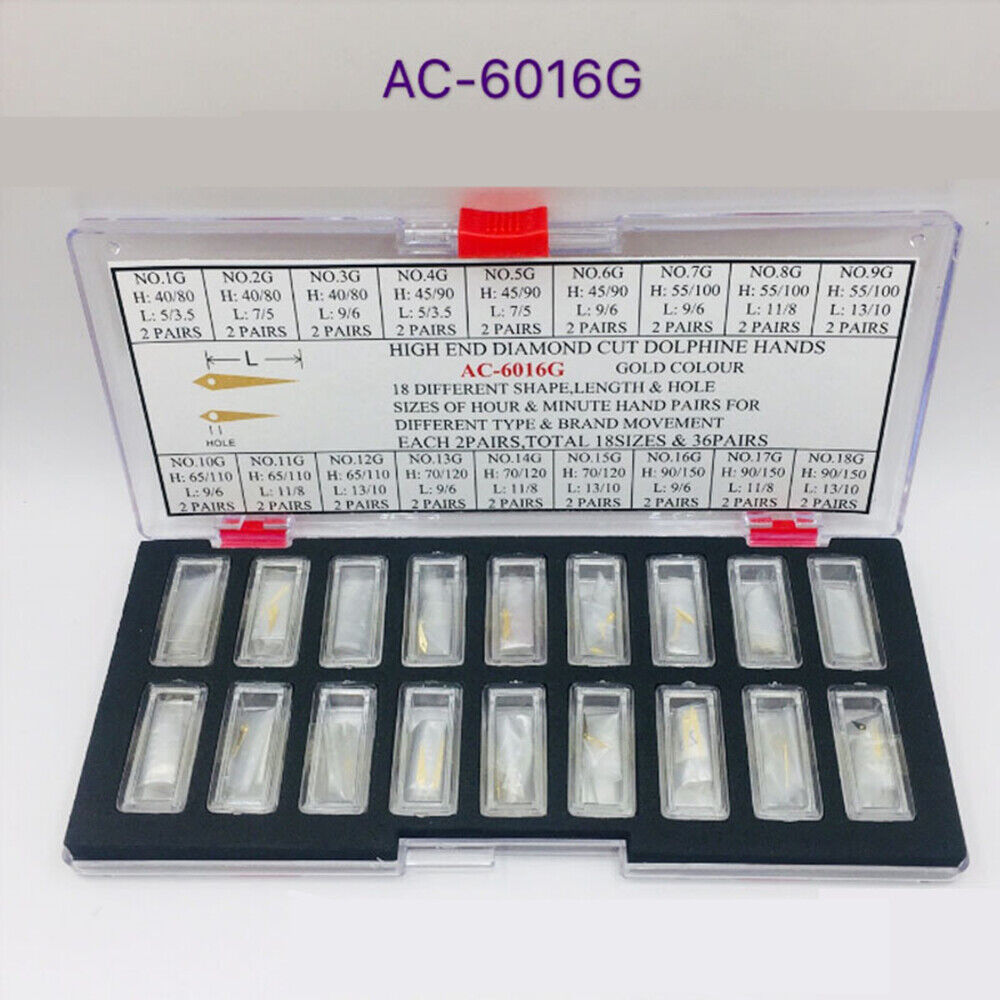 36 Paare Hochwertige diamantgeschnittene Delfin-Uhrzeiger, goldplattiert für Uhrmacher