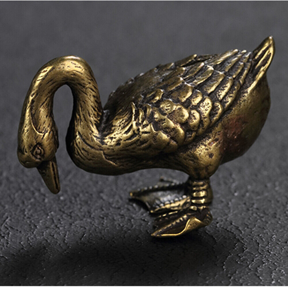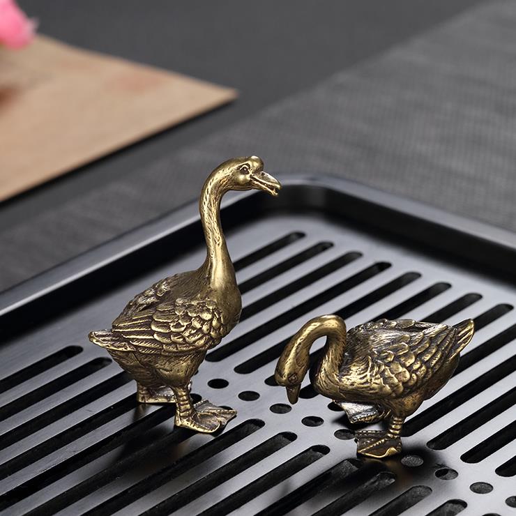 Solid Copper Cute Goose Trinket Vintage Hand Carved Bronze Model Figurines