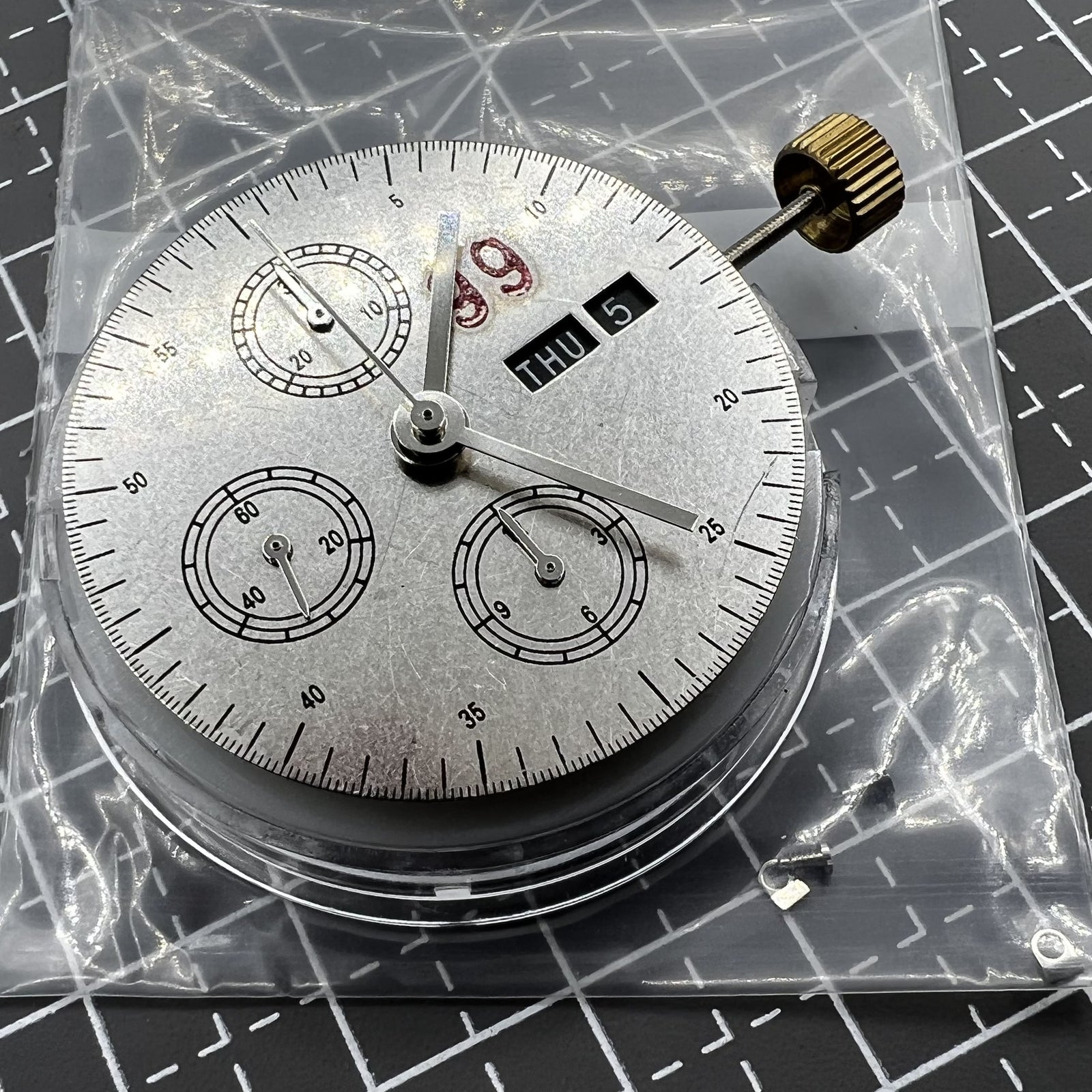 Chronograph mit schwarzem Zifferblatt Modell 7750 Kleine Sekunde bei 9 Uhr Tag und Datum mit drei Zeigern